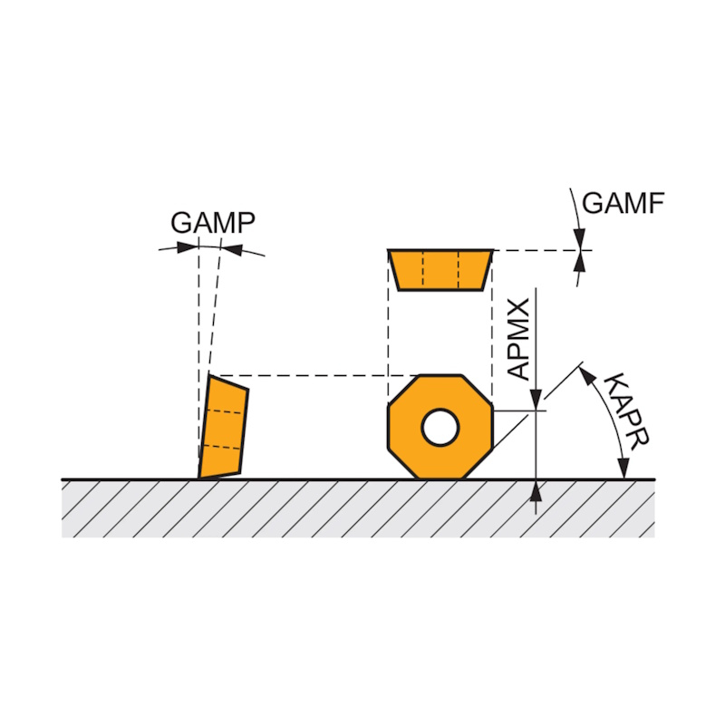 Face mill with positve/negative geometry which utilises 6 of OD.. 0605ZZ.. or RP.. 1505MO.. single-sided inserts. Through coolant and differential pitch for face milling and chamfering.