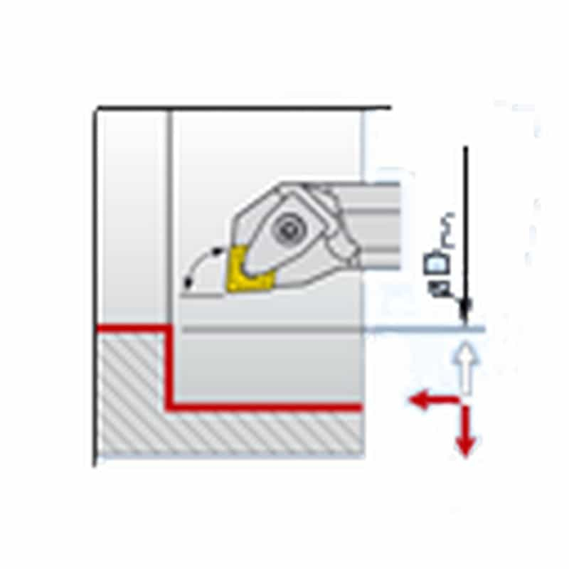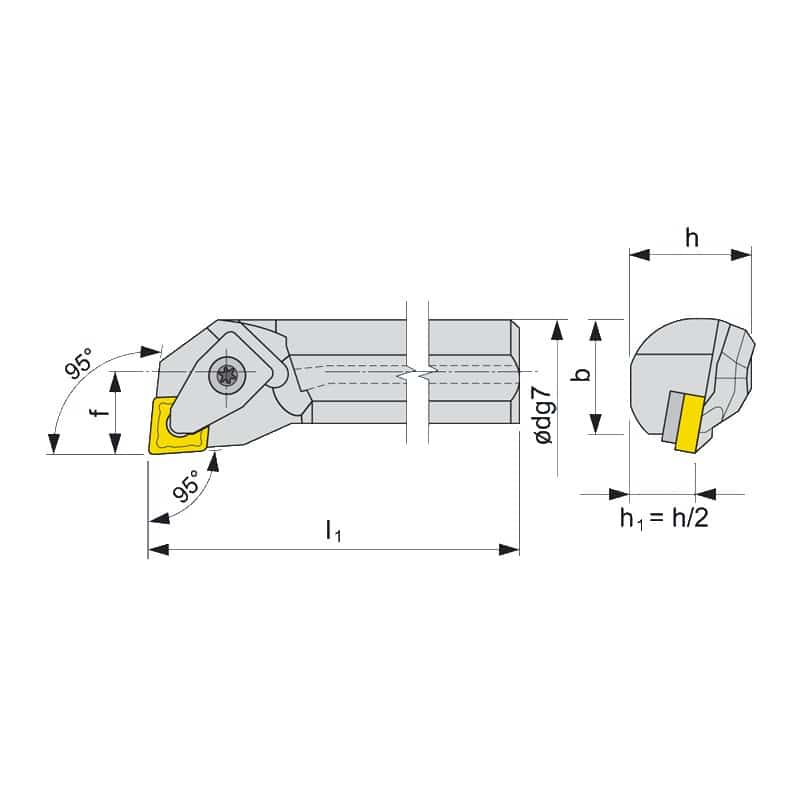Double clamp boring bar for holding a 80° rhombus negative insert, left hand 95° side and end cutting with off-set shank, steel with coolant hole, for taper boring and longitudinal boring with and without shoulder