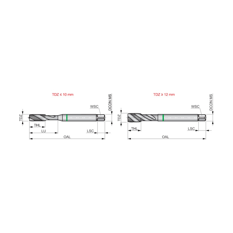 Dormer E474 Green SHARK 35° Spiral Flute Tap Super-B Coating - Aluminium