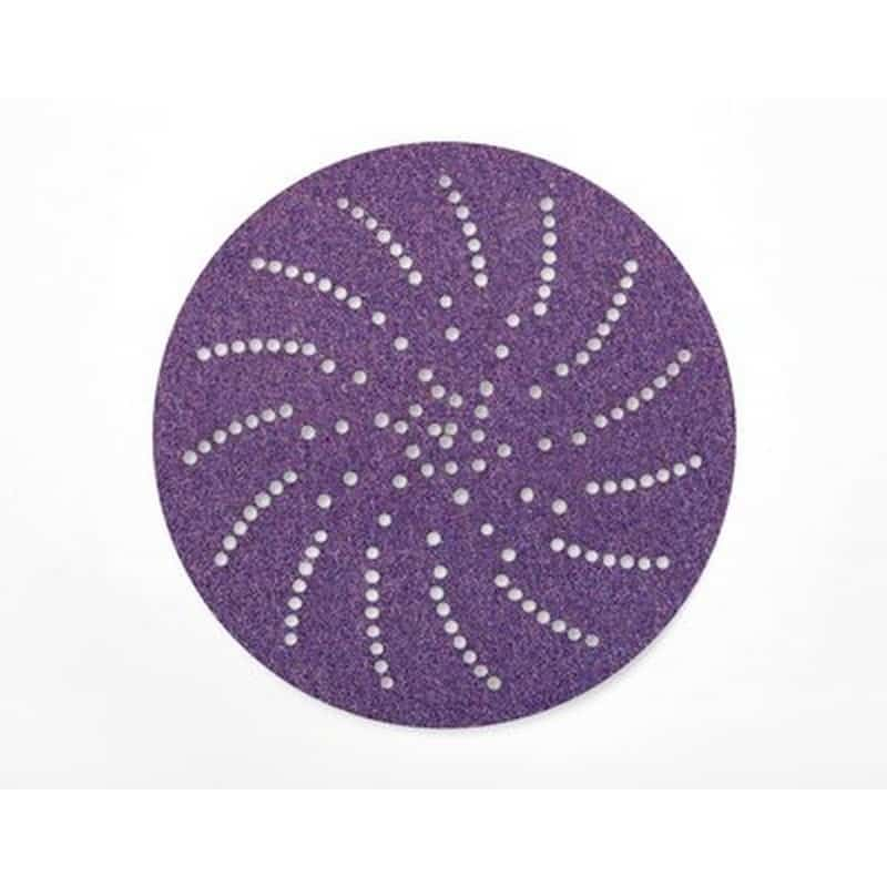 Use 3M™ Cubitron™ II Hookit™ Clean Sanding Film Disc 775L for better tear resistance than paper discs. Our discs cut up to two times faster and last up to six times longer than conventional abrasives. The multi-hole pattern on our Clean Sanding products evacuates dust at a higher rate than 5 or 6 hole products. Sandpaper discs cut better and last longer when dust isn’t loading the cutting surface of the abrasives. This design doesn’t require alignment of holes with the disc pad making disc changes fast and simple. An open coat construction means the abrasive grains have space between them to help evacuate dust and other sanding debris. This helps avoid clogging the cutting edge of the grains. The load resistant coating allows the disc to continue cutting even when sanding softwoods, paints and other materials that would usually clog the disc, leading to reduced sanding ability. Our film discs feature 3M Precision Shaped Grain which forms into triangular points that slice through metal rather than gouging or ploughing like traditional abrasives. These points continuously self-sharpen as they fracture, generating an extremely fast cut. 3M offers a complete line of hook and loop style Hookit discs for work spaces where adhesive backed discs may become contaminated by dust or dirt. Hookit discs tend to leave finer finishes than adhesive backed discs, so are often used in applications where a 3M™ Stikit™ disc may be too aggressive. Our discs are ideal for a range of applications focused on stock removal and are effective on a wide variety of substrates – including metals, composites, gelcoat and whitewood. Hookit sanding discs conveniently attach to a hook-and-loop backup disc pad (sold separately). They can be easily removed and can be reused for the entire life of the abrasive. For maximum dust extraction use with 3M Elite Random Orbital Sanders and 3M Hookit Clean Sanding pads (both sold separately).