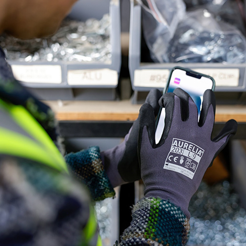 Aurelia 203 Grey Nylon Spandex Glove Black Micro Nitrile Foam Coating