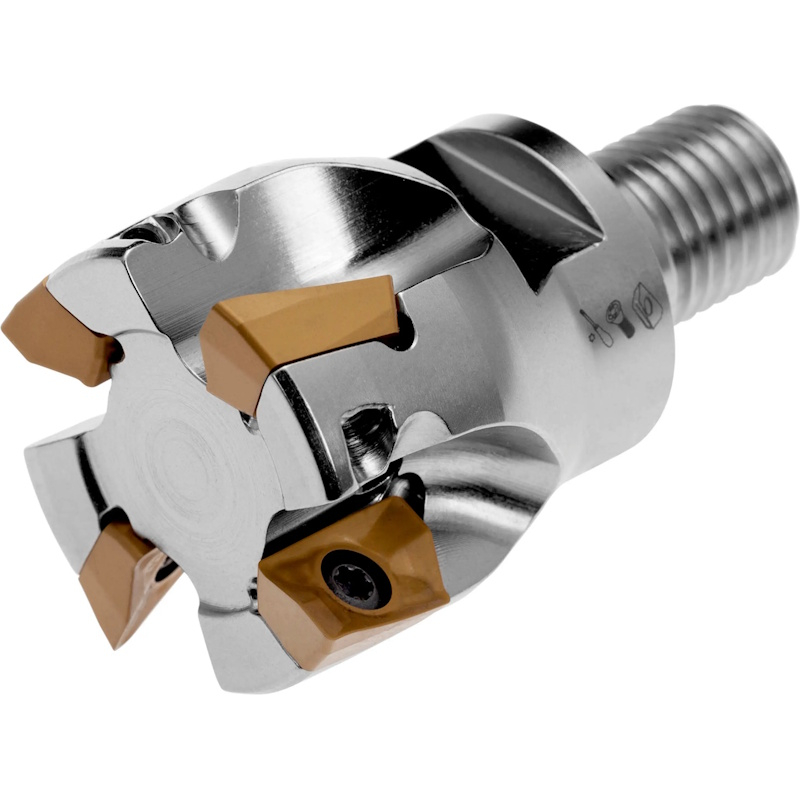 Shoulder mill with positve/negative geometry which utilises AD.. 16.... or AD.. 16.... single-sided inserts, through coolant for copy milling, shallow shoulder milling, shallow slot milling, ramping, helical milling, plunge milling and progressive plunge milling.