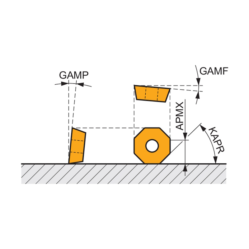 Face mill with positve/negative geometry which utilises OD.T 05IM, RD.T 12IM or SD.T 12IM single-sided inserts. Through coolant for face milling, copy milling, shallow shoulder milling, shallow slot milling, ramping, helical milling, plunge milling, progressive plunge milling and chamfering.