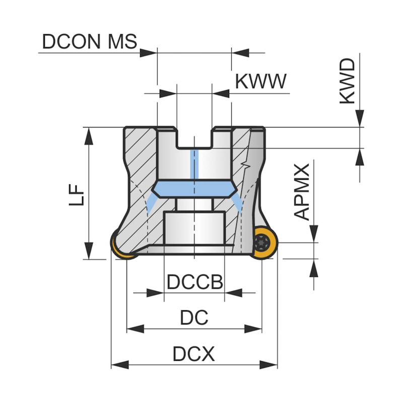 Copy face mill with double negative geometry which utilises RC.. 12.... single-sided inserts, through coolant for face milling, copy milling, ramping, helical milling and progressive plunge milling.
