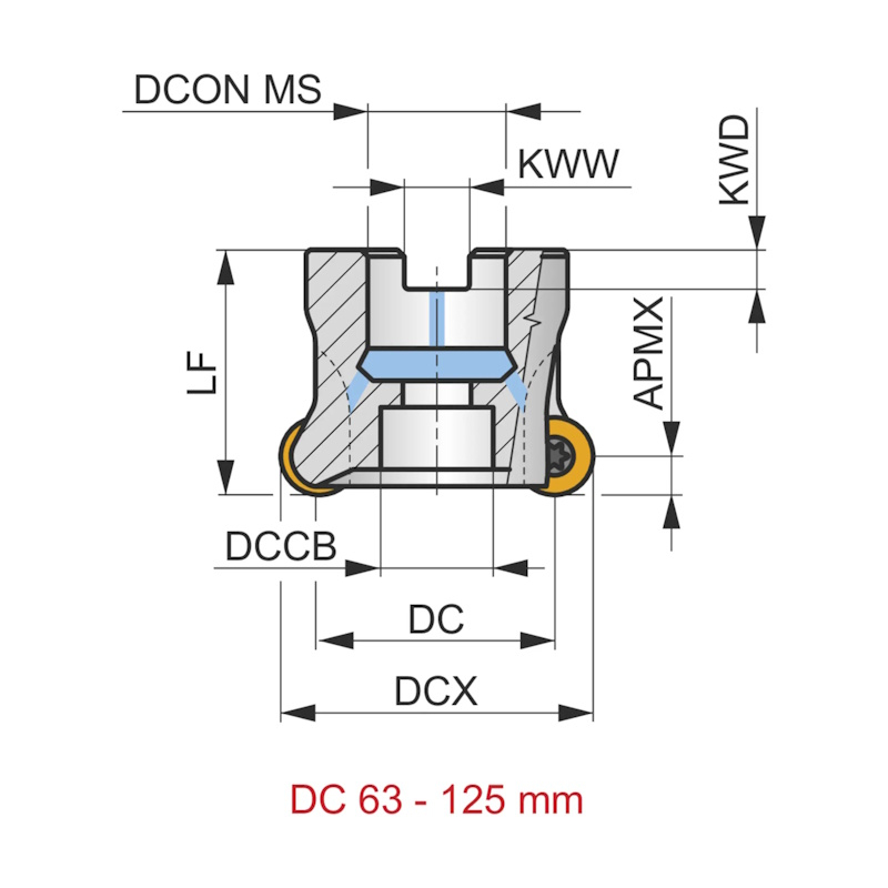 Copy face mill with double negative geometry which utilises RC.. 16.... single-sided inserts, through coolant for face milling, copy milling, ramping, helical milling and progressive plunge milling.