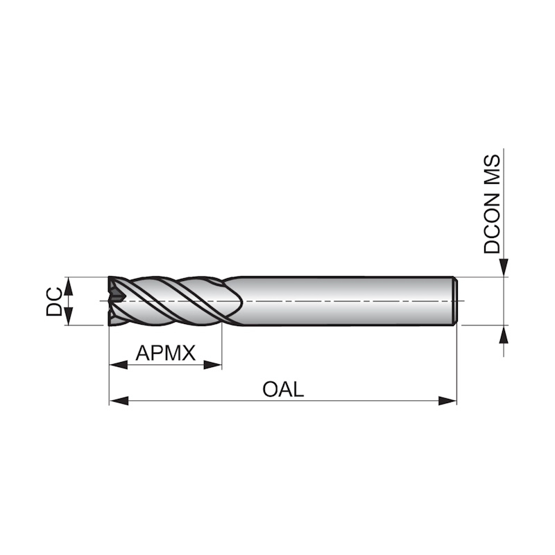 Medium cut length, 4-flute design with 34° helix provides high rigidity for profile milling. TiALN coating for higher temperature resistance and longer tool life.;TiAlN coating.