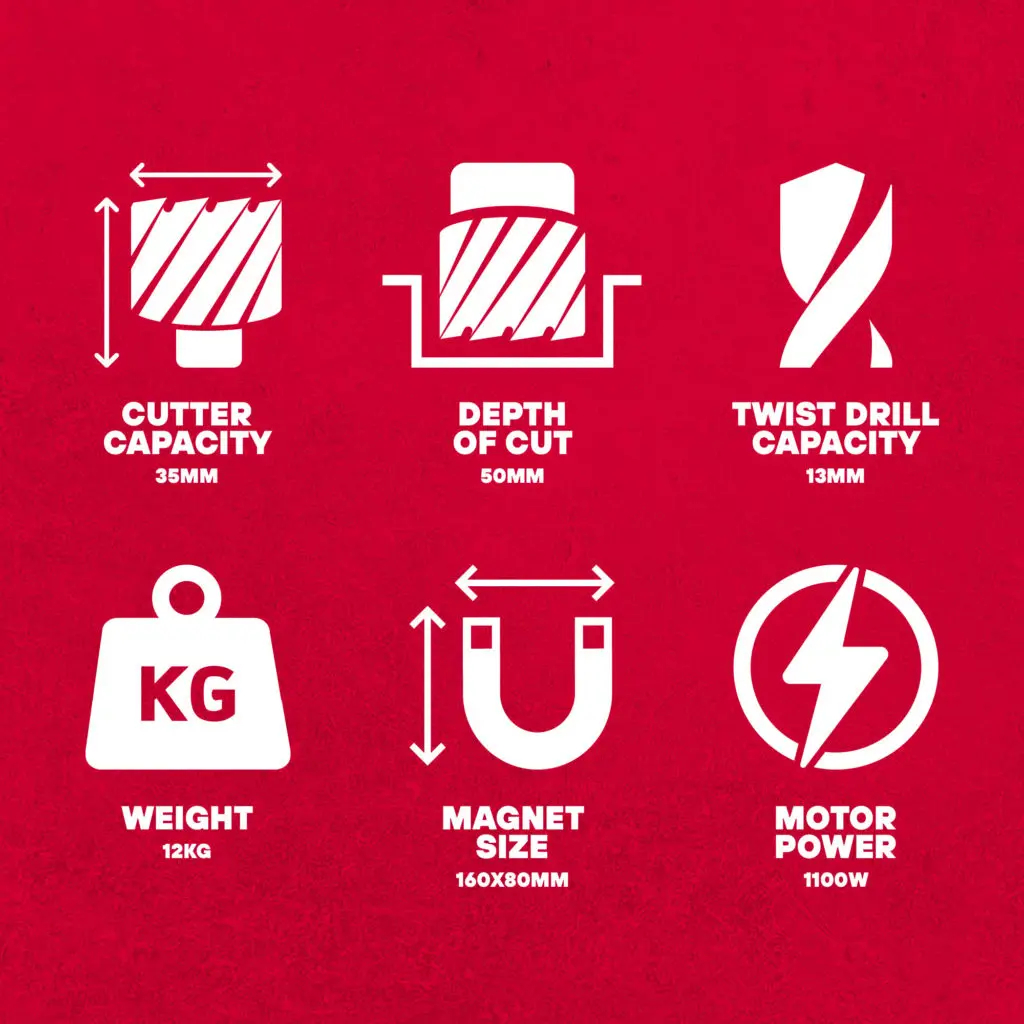 Suitable for drilling up to 40mm diameter by 50mm depth.