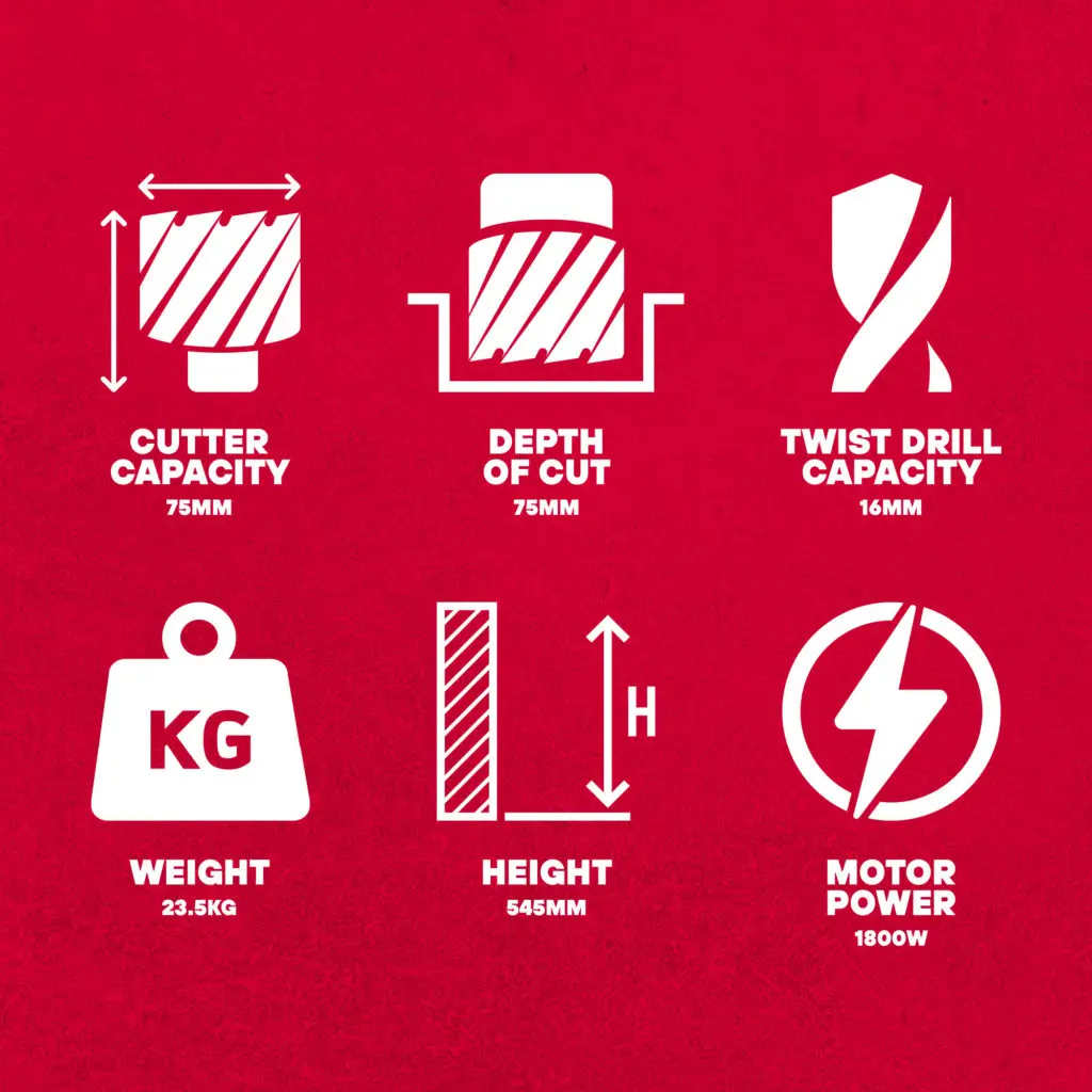 Suitable for drilling up to 75mm diameter by 75mm depth.