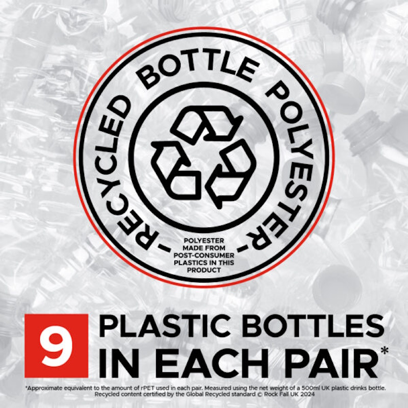 The RF108 Fly is a breathtakingly lightweight and highly appealing groundbreaking safety trainer that has been designed to be sustainable to its core. It features recycled plastic bottle upper textiles, lining and lace materials providing outstanding comfort along with breathability and water repellent properties, water often runs off!
